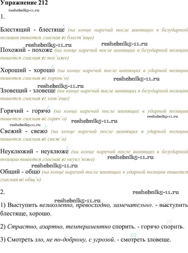 Готовая домашняя работа с ответами по Русскому языку за 6 класс Быстрова, Кибирева, Гостева Учебник Инновационная школа Часть 1, 2 Русское слово 2016 ФГОС - Упражнения 212