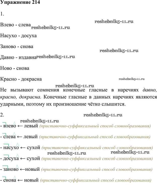 Готовая домашняя работа с ответами по Русскому языку за 6 класс Быстрова, Кибирева, Гостева Учебник Инновационная школа Часть 1, 2 Русское слово 2016 ФГОС - Упражнения 214