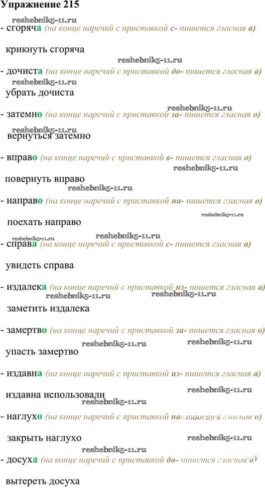 Готовая домашняя работа с ответами по Русскому языку за 6 класс Быстрова, Кибирева, Гостева Учебник Инновационная школа Часть 1, 2 Русское слово 2016 ФГОС - Упражнения 215