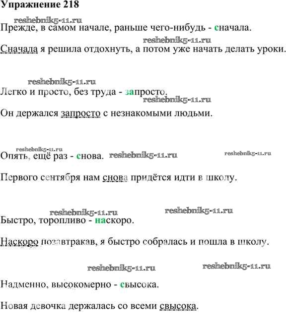Готовая домашняя работа с ответами по Русскому языку за 6 класс Быстрова, Кибирева, Гостева Учебник Инновационная школа Часть 1, 2 Русское слово 2016 ФГОС - Упражнения 218