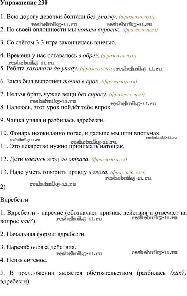 Русский язык за 6 класс Быстрова Учебник Инновационная школа Русское слово упражнение 230