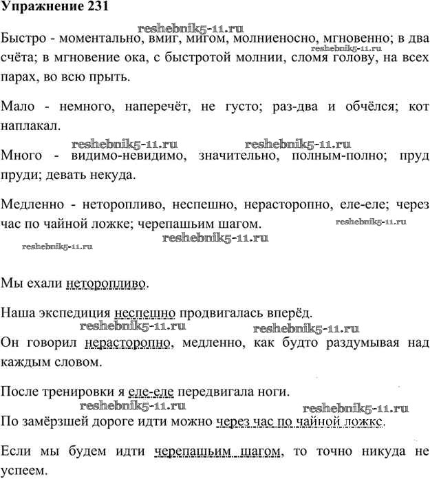 Готовая домашняя работа с ответами по Русскому языку за 6 класс Быстрова, Кибирева, Гостева Учебник Инновационная школа Часть 1, 2 Русское слово 2016 ФГОС - Упражнения 231
