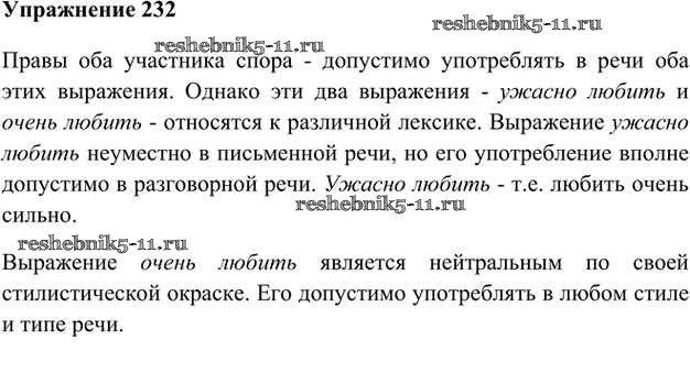 Русский язык за 6 класс Быстрова Учебник Инновационная школа Русское слово упражнение 232
