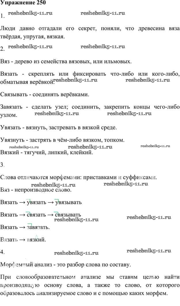 Готовая домашняя работа с ответами по Русскому языку за 6 класс Быстрова, Кибирева, Гостева Учебник Инновационная школа Часть 1, 2 Русское слово 2016 ФГОС - Упражнения 250