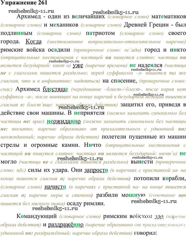 Готовая домашняя работа с ответами по Русскому языку за 6 класс Быстрова, Кибирева, Гостева Учебник Инновационная школа Часть 1, 2 Русское слово 2016 ФГОС - Упражнения 261
