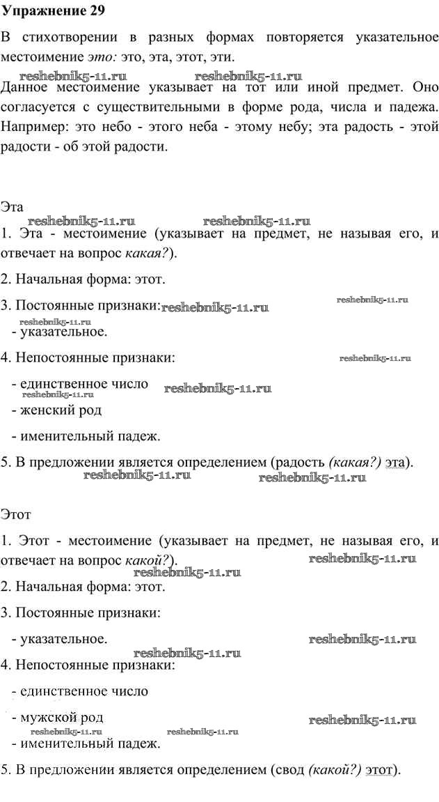 Готовая домашняя работа с ответами по Русскому языку за 6 класс Быстрова, Кибирева, Гостева Учебник Инновационная школа Часть 1, 2 Русское слово 2016 ФГОС - Упражнения 29