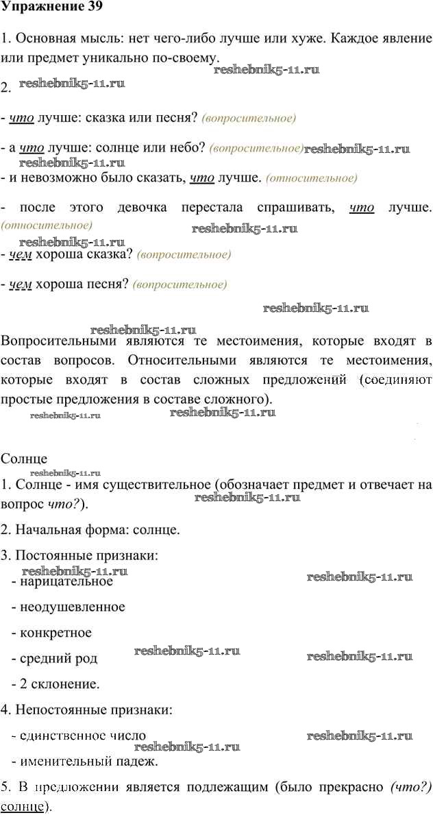 Готовая домашняя работа с ответами по Русскому языку за 6 класс Быстрова, Кибирева, Гостева Учебник Инновационная школа Часть 1, 2 Русское слово 2016 ФГОС - Упражнения 39