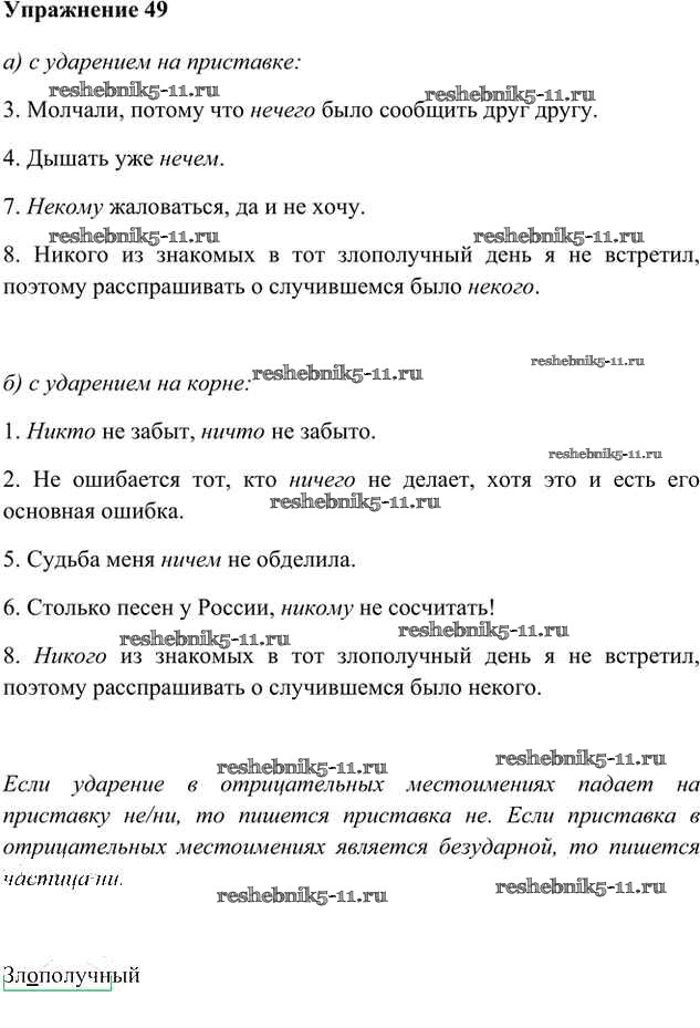 Готовая домашняя работа с ответами по Русскому языку за 6 класс Быстрова, Кибирева, Гостева Учебник Инновационная школа Часть 1, 2 Русское слово 2016 ФГОС - Упражнения 49