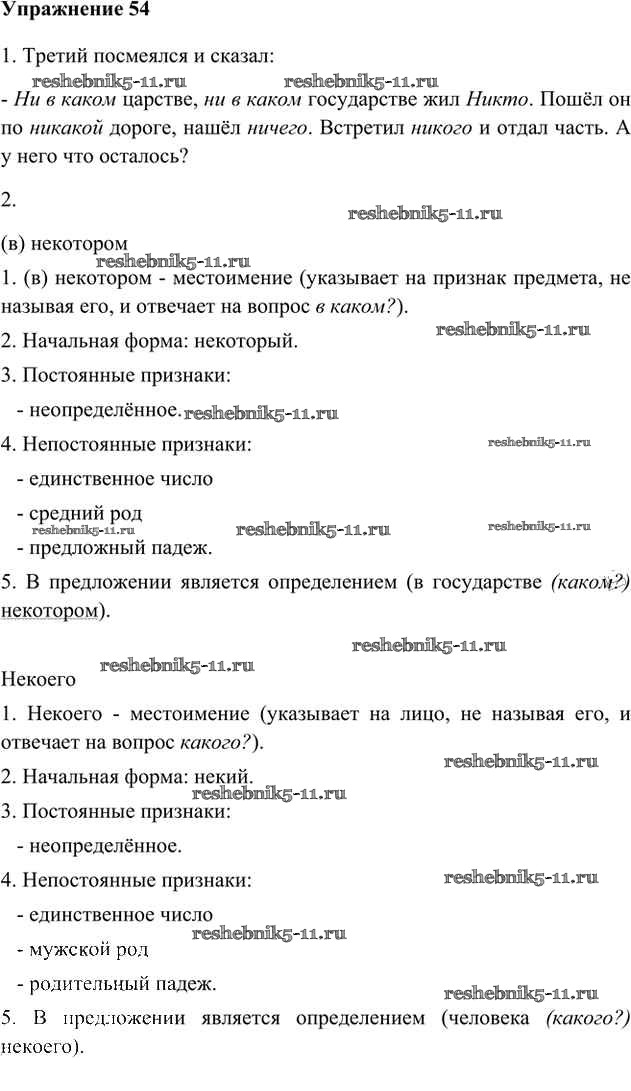 Готовая домашняя работа с ответами по Русскому языку за 6 класс Быстрова, Кибирева, Гостева Учебник Инновационная школа Часть 1, 2 Русское слово 2016 ФГОС - Упражнения 54