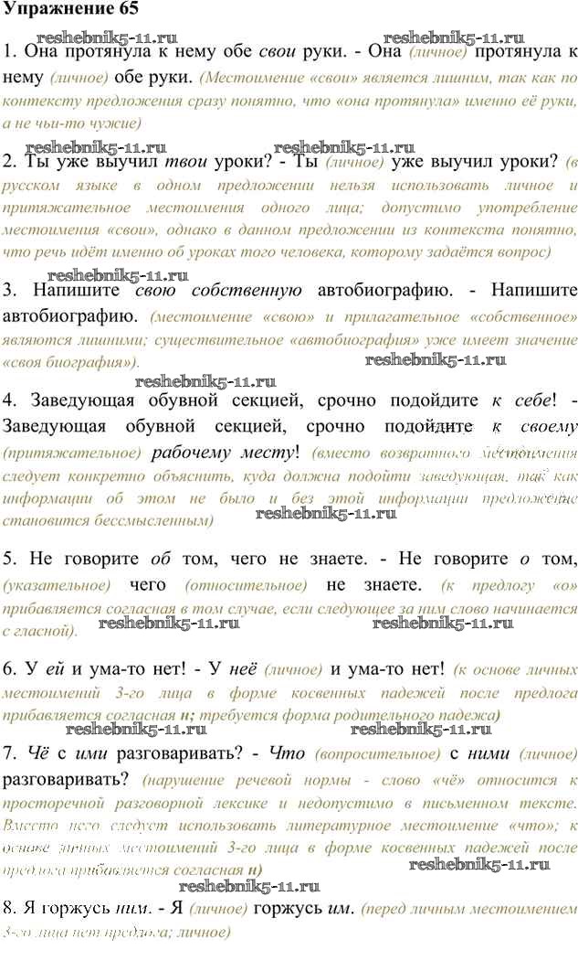 Готовая домашняя работа с ответами по Русскому языку за 6 класс Быстрова, Кибирева, Гостева Учебник Инновационная школа Часть 1, 2 Русское слово 2016 ФГОС - Упражнения 65