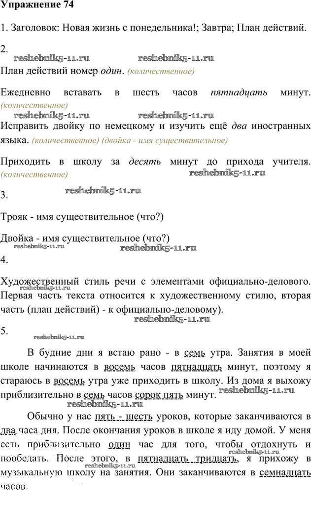 Русский язык за 6 класс Быстрова Учебник Инновационная школа Русское слово упражнение 74