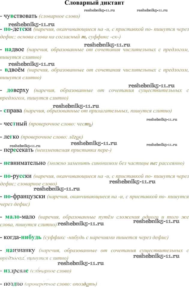 Русский язык за 6 класс Быстрова Учебник Инновационная школа Русское слово словарный диктант с.139