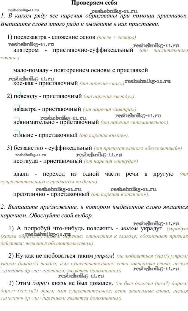Готовая домашняя работа с ответами по Русскому языку за 6 класс Быстрова, Кибирева, Гостева Учебник Инновационная школа Часть 1, 2 Русское слово 2016 ФГОС - Проверяем себя с.139