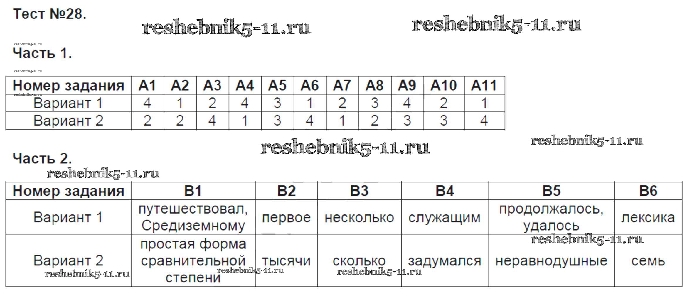 Готовая домашняя работа с ответами по Русскому языку за 6 класс Егорова Контрольно-измерительные материалы (КИМ) ВАКО 2017 ФГОС - Тесты Тест-28