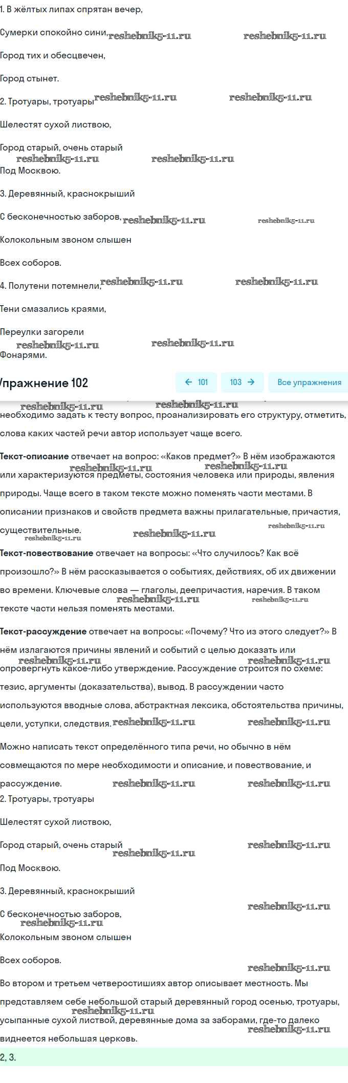 Готовая домашняя работа с ответами по Русскому языку за 6 класс Гостева Рабочая тетрадь УМК Экзамен 2015 ФГОС - Упражнения 102