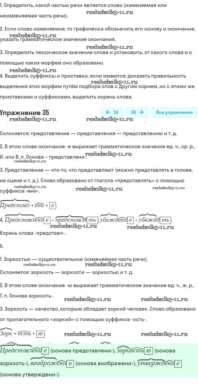 Готовая домашняя работа с ответами по Русскому языку за 6 класс Гостева Рабочая тетрадь УМК Экзамен 2015 ФГОС - Упражнения 35