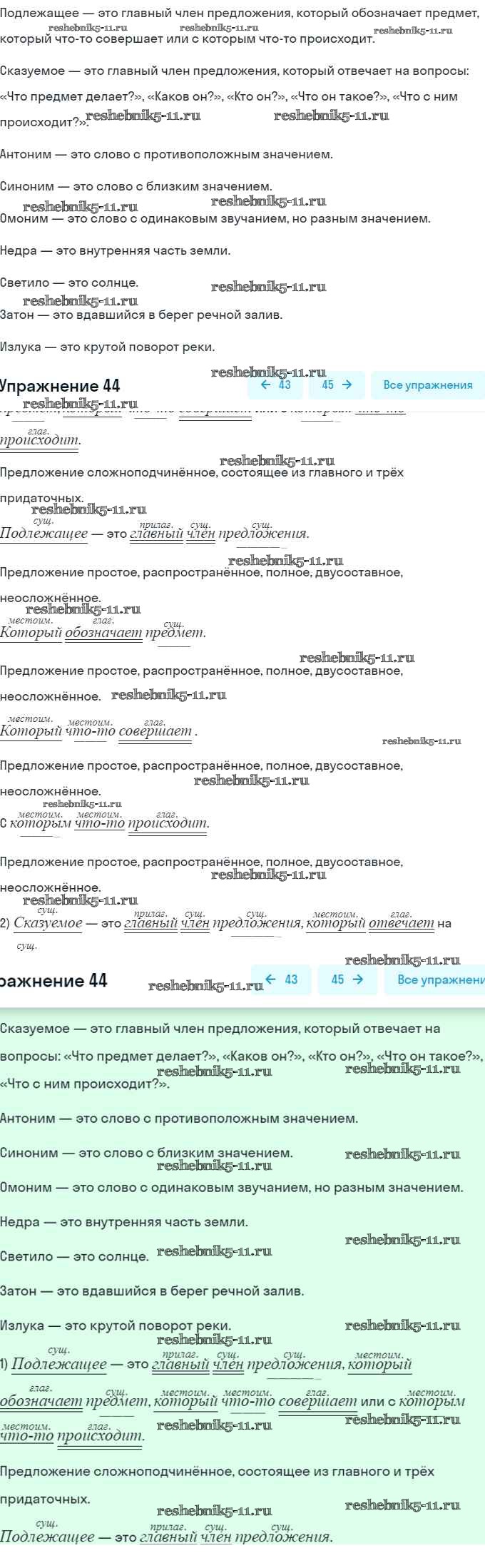 Готовая домашняя работа с ответами по Русскому языку за 6 класс Гостева Рабочая тетрадь УМК Экзамен 2015 ФГОС - Упражнения 44