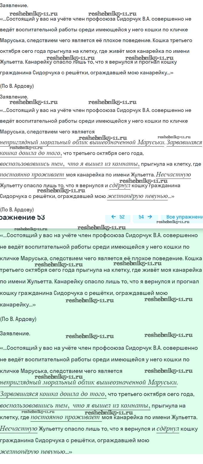 Готовая домашняя работа с ответами по Русскому языку за 6 класс Гостева Рабочая тетрадь УМК Экзамен 2015 ФГОС - Упражнения 53