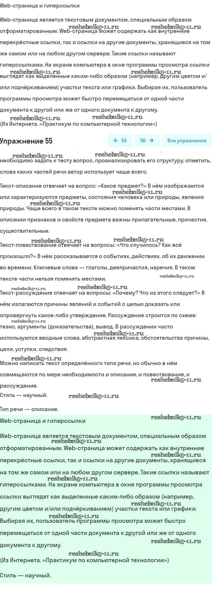 Готовая домашняя работа с ответами по Русскому языку за 6 класс Гостева Рабочая тетрадь УМК Экзамен 2015 ФГОС - Упражнения 55