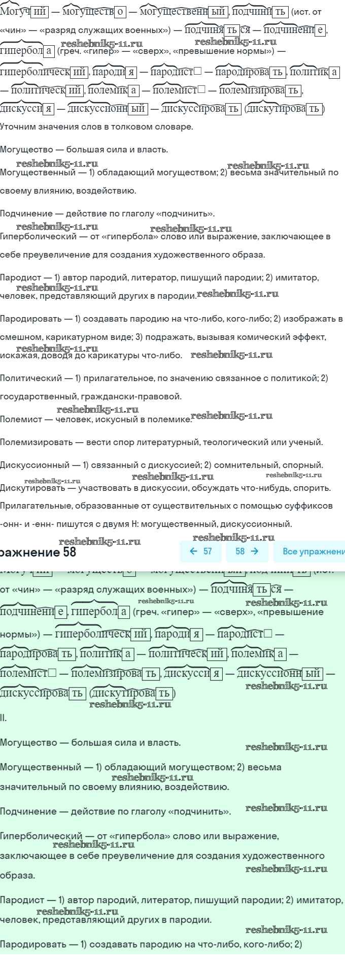 Готовая домашняя работа с ответами по Русскому языку за 6 класс Гостева Рабочая тетрадь УМК Экзамен 2015 ФГОС - Упражнения 58