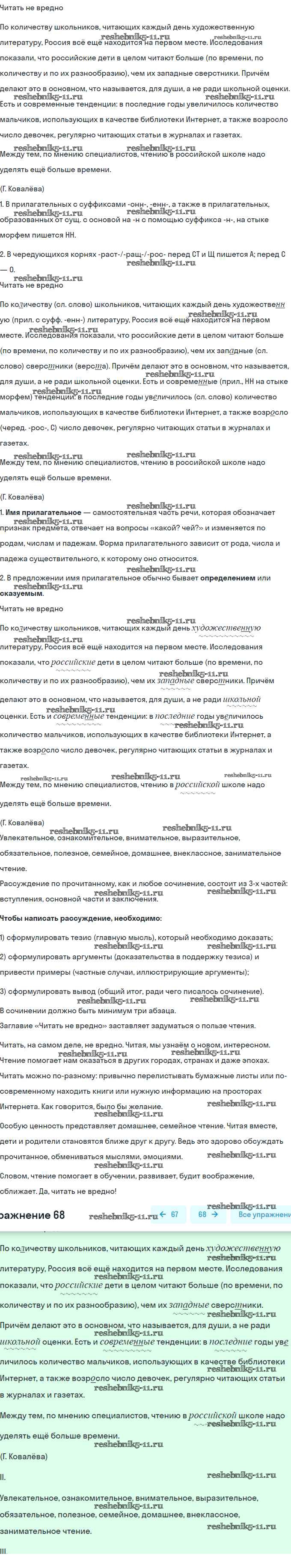 Готовая домашняя работа с ответами по Русскому языку за 6 класс Гостева Рабочая тетрадь УМК Экзамен 2015 ФГОС - Упражнения 68