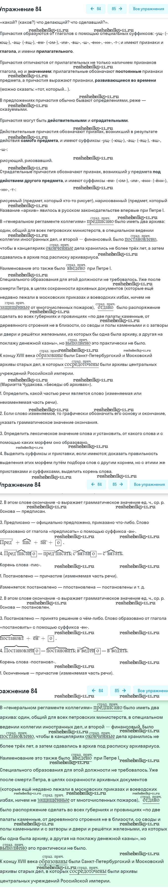 Готовая домашняя работа с ответами по Русскому языку за 6 класс Гостева Рабочая тетрадь УМК Экзамен 2015 ФГОС - Упражнения 84