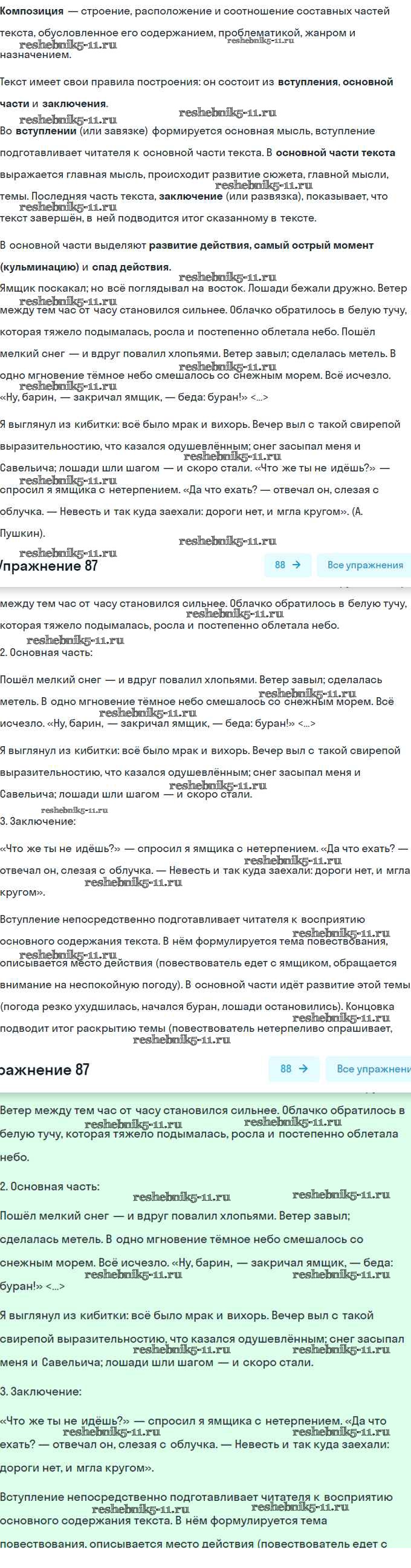 Готовая домашняя работа с ответами по Русскому языку за 6 класс Гостева Рабочая тетрадь УМК Экзамен 2015 ФГОС - Упражнения 87
