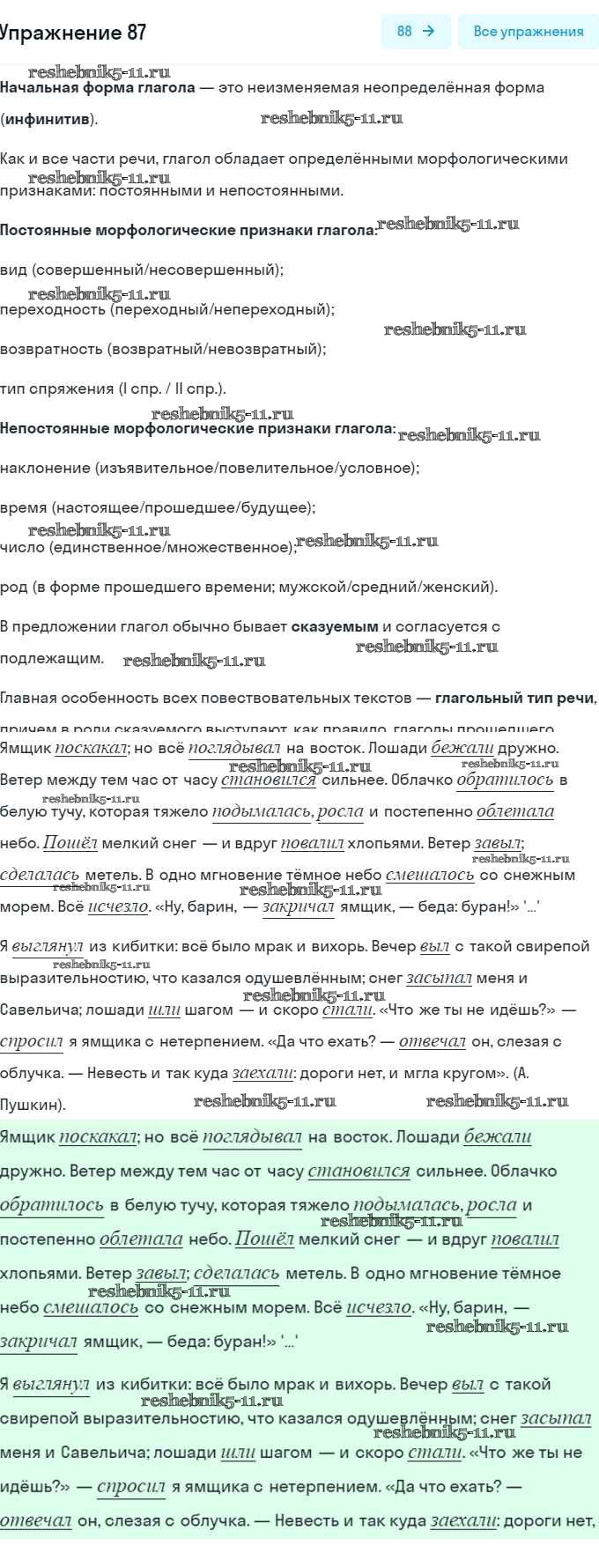 Русский язык за 6 класс Гостева Рабочая тетрадь УМК Экзамен упражнение 87
