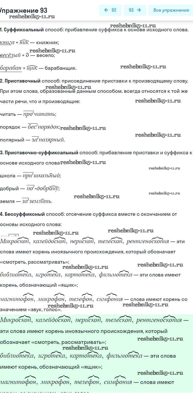 Готовая домашняя работа с ответами по Русскому языку за 6 класс Гостева Рабочая тетрадь УМК Экзамен 2015 ФГОС - Упражнения 93