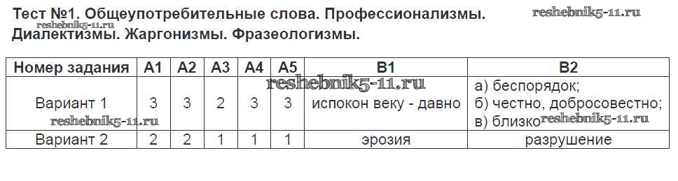 Готовая домашняя работа с ответами по Русскому языку за 6 класс Аксенова Контрольно-измерительные материалы (КИМ) Экзамен 2014 ФГОС - Тесты Тест-1. Общеупотребительные слова. Профессионализмы