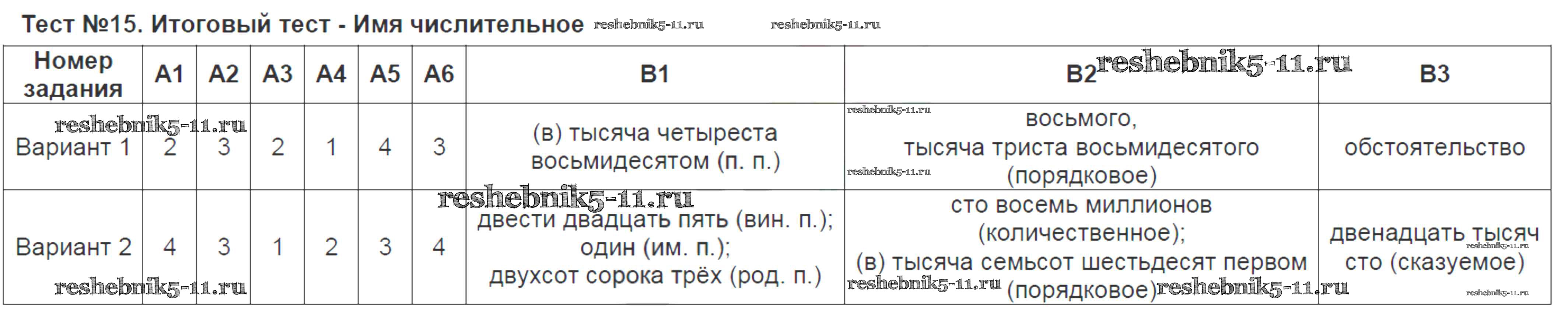 Готовая домашняя работа с ответами по Русскому языку за 6 класс Аксенова Контрольно-измерительные материалы (КИМ) Экзамен 2014 ФГОС - Тесты Тест-15. Итоговый тест - Имя числительное