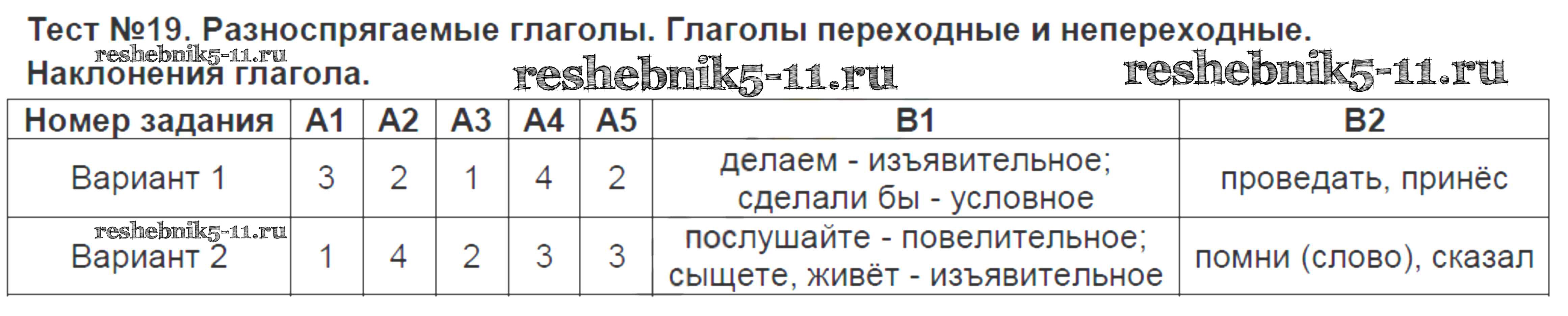 Готовая домашняя работа с ответами по Русскому языку за 6 класс Аксенова Контрольно-измерительные материалы (КИМ) Экзамен 2014 ФГОС - Тесты Тест-19. Разноспрягаемые глаголы. Глаголы переходные и непереходные