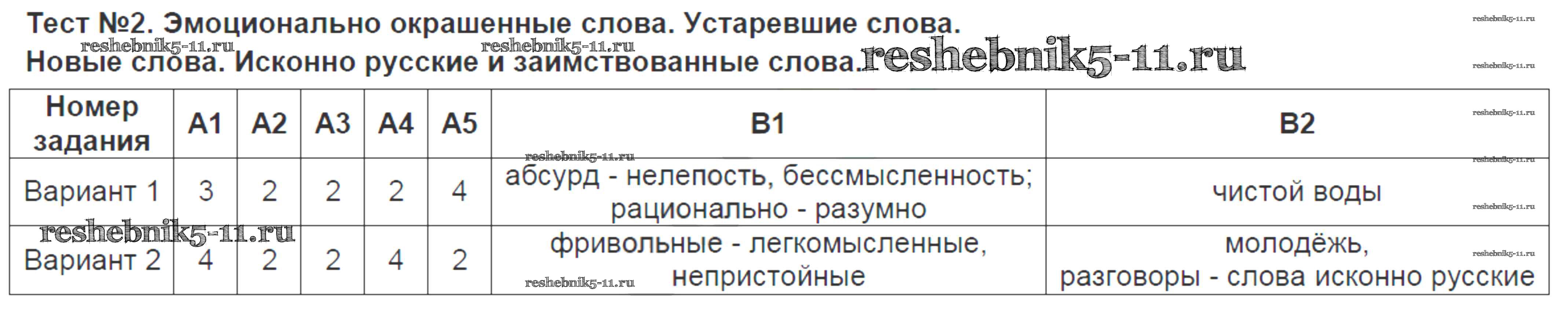 Готовая домашняя работа с ответами по Русскому языку за 6 класс Аксенова Контрольно-измерительные материалы (КИМ) Экзамен 2014 ФГОС - Тесты Тест-2. Эмоционально окрашенные слова. Устаревшие слова