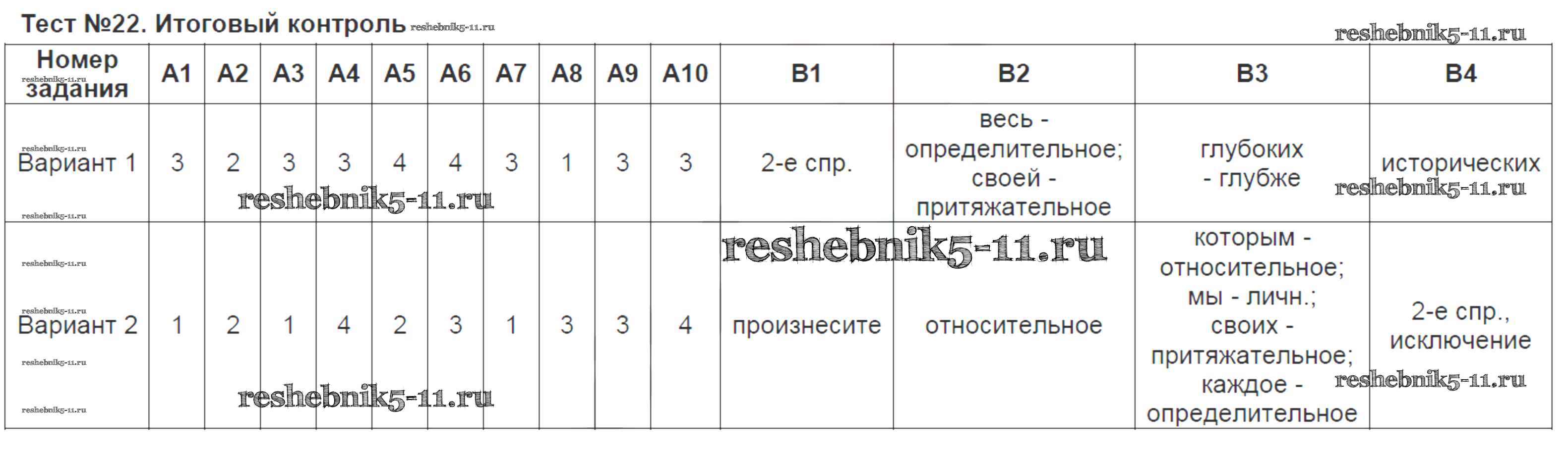 Готовая домашняя работа с ответами по Русскому языку за 6 класс Аксенова Контрольно-измерительные материалы (КИМ) Экзамен 2014 ФГОС - Тесты Тест-22. Итоговый контроль