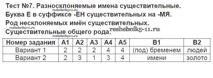 Готовая домашняя работа с ответами по Русскому языку за 6 класс Аксенова Контрольно-измерительные материалы (КИМ) Экзамен 2014 ФГОС - Тесты Тест-7. Разносклоняемые имена существительные