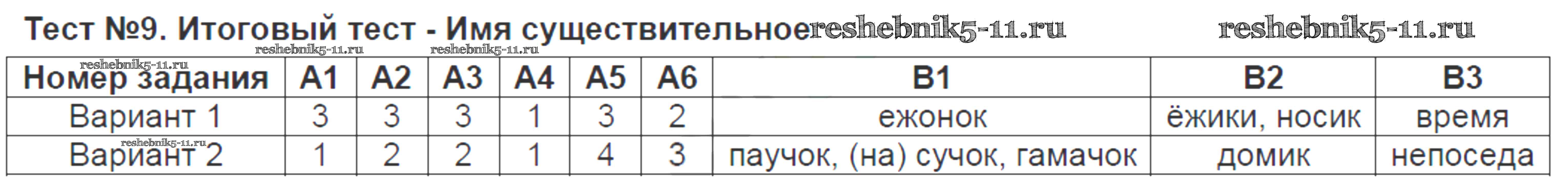 Готовая домашняя работа с ответами по Русскому языку за 6 класс Аксенова Контрольно-измерительные материалы (КИМ) Экзамен 2014 ФГОС - Тесты Тест-9. Итоговый тест - Имя существительное