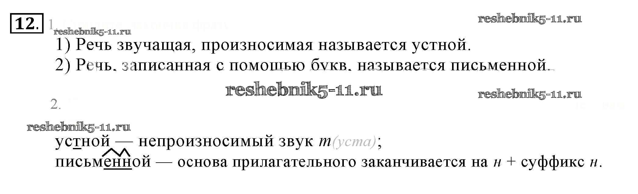 Готовая домашняя работа с ответами по Русскому языку за 6 класс Разумовская, Львова, Капинос, Львов, Соловейчик, Сергеева, Тронина Учебник Вертикаль Дрофа 2016 ФГОС - Упражнения 12