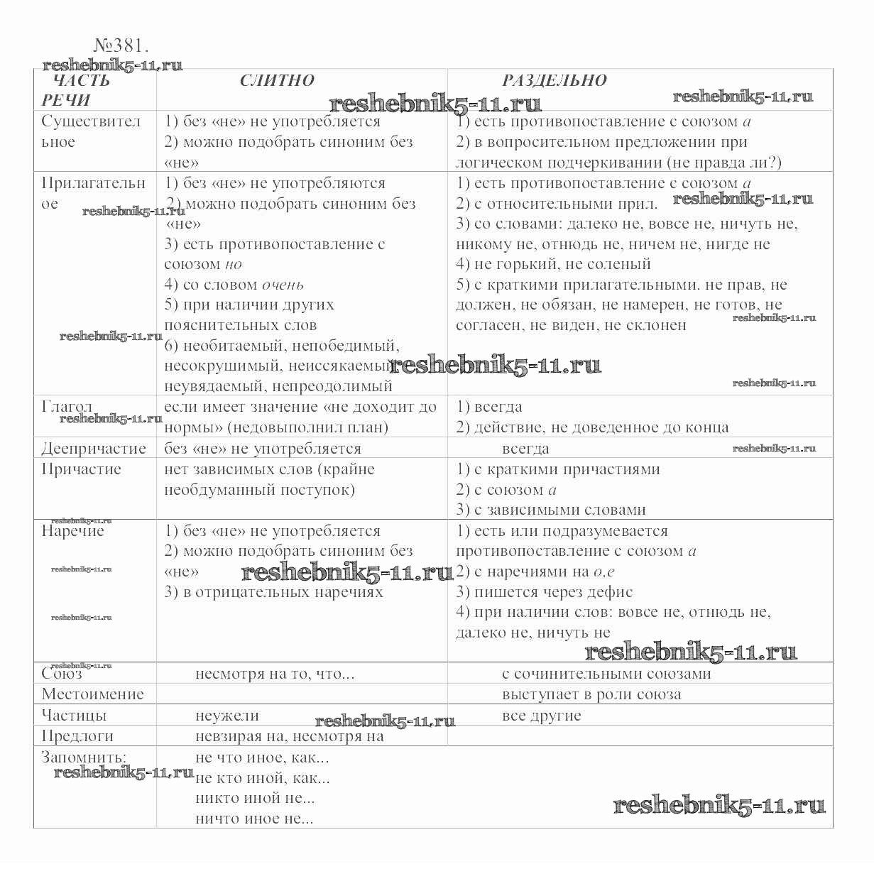 Готовая домашняя работа с ответами по Русскому языку за 6 класс Разумовская, Львова, Капинос, Львов, Соловейчик, Сергеева, Тронина Учебник Вертикаль Дрофа 2016 ФГОС - Упражнения 381
