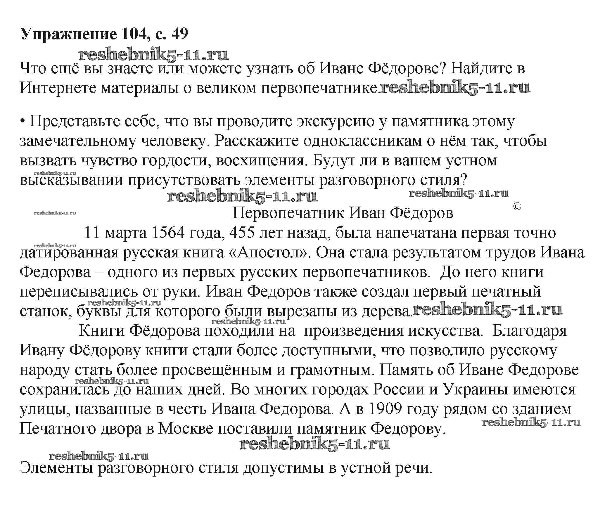 Русский язык за 6 класс Баранов Учебник Просвещение упражнение 104