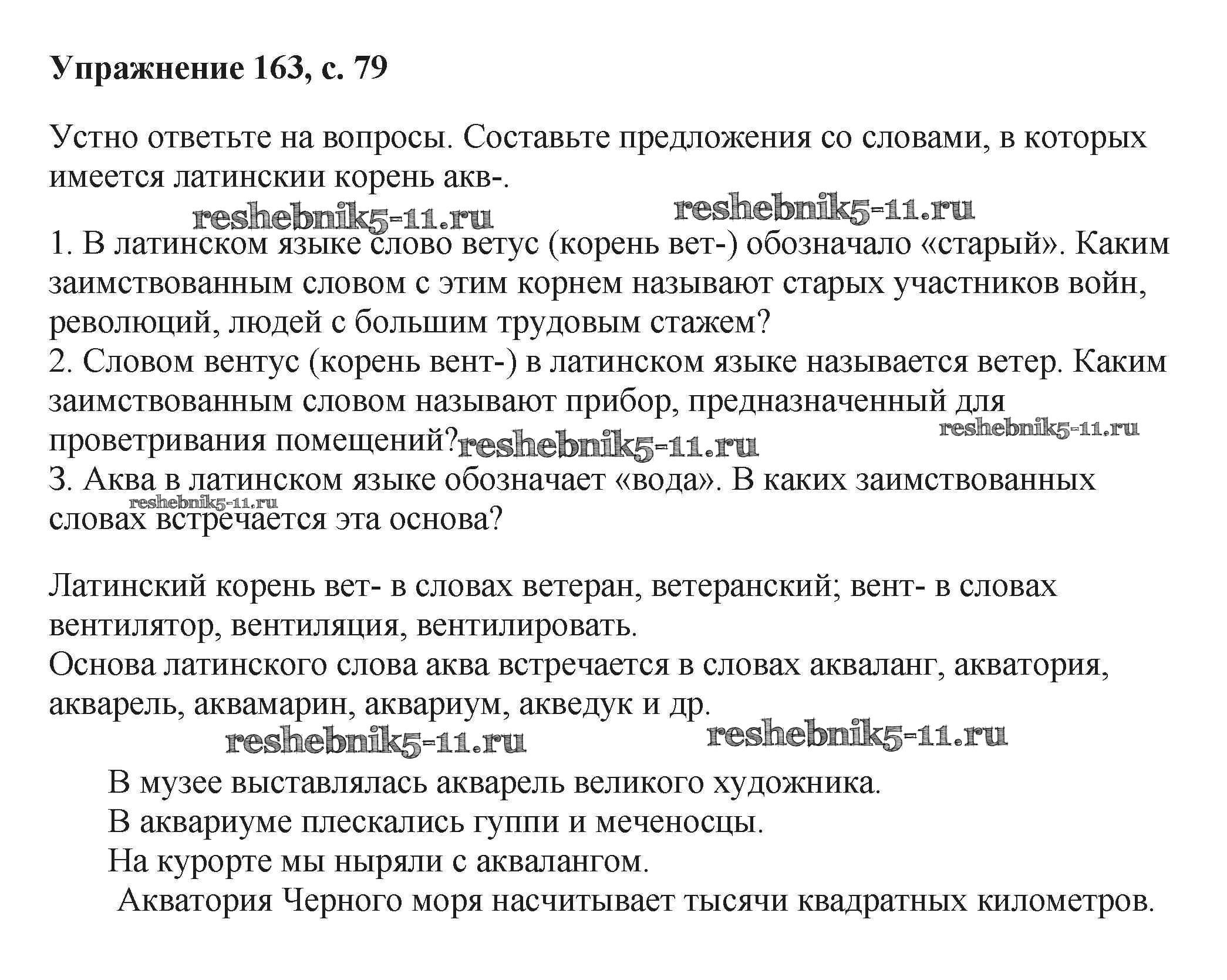 Готовая домашняя работа с ответами по Русскому языку за 6 класс Баранов, Ладыженская, Тростенцова, Григорян, Кулибаба Учебник Часть 1, 2 Просвещение 2015 ФГОС - Упражнения 163
