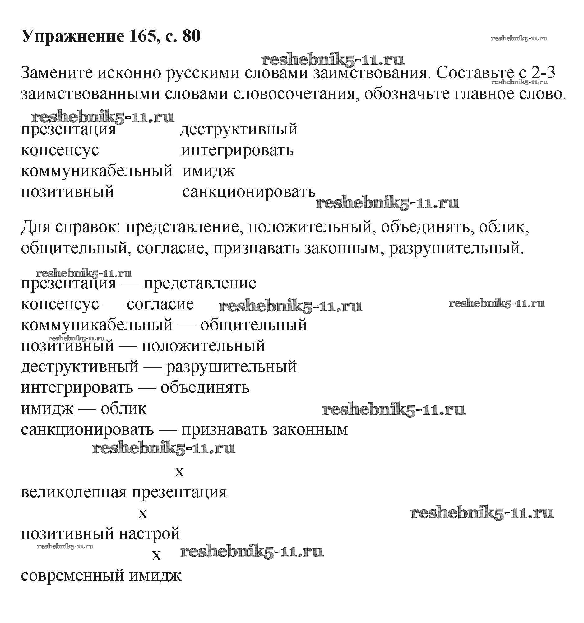 Готовая домашняя работа с ответами по Русскому языку за 6 класс Баранов, Ладыженская, Тростенцова, Григорян, Кулибаба Учебник Часть 1, 2 Просвещение 2015 ФГОС - Упражнения 165