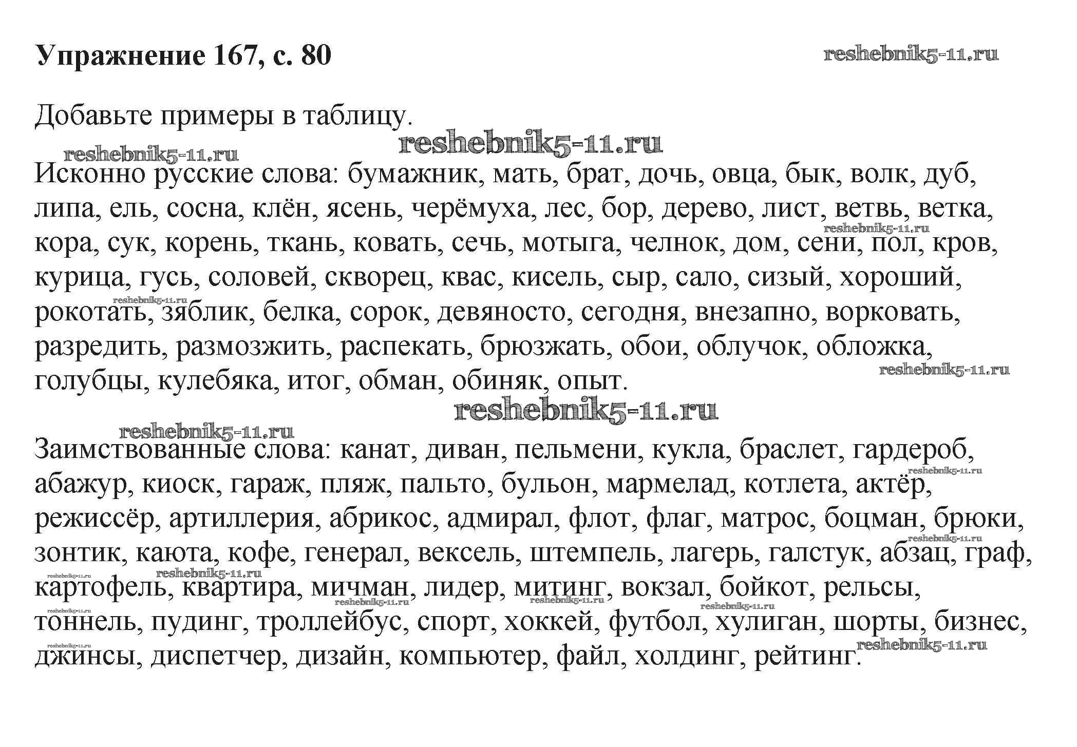 Готовая домашняя работа с ответами по Русскому языку за 6 класс Баранов, Ладыженская, Тростенцова, Григорян, Кулибаба Учебник Часть 1, 2 Просвещение 2015 ФГОС - Упражнения 167