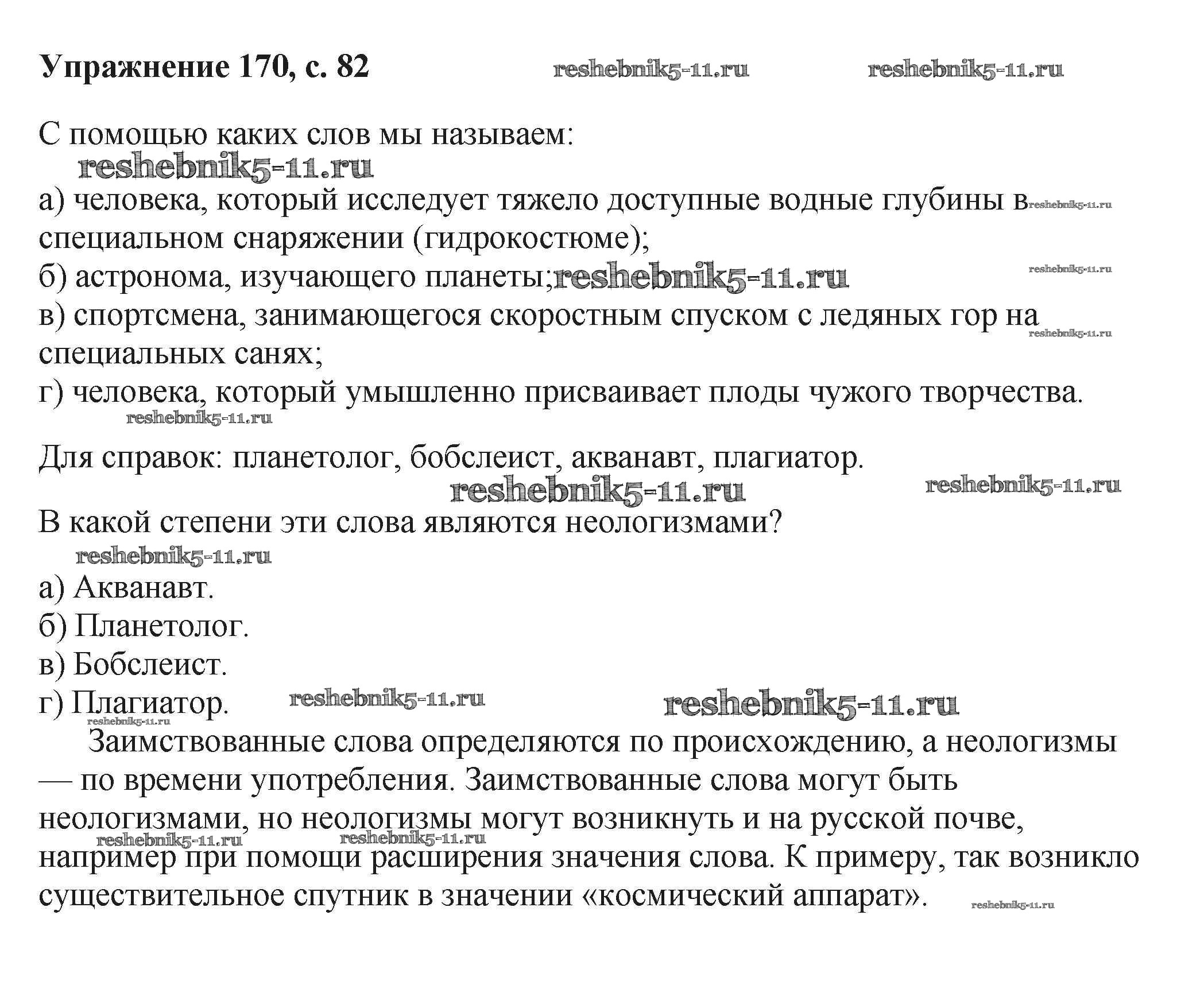 Готовая домашняя работа с ответами по Русскому языку за 6 класс Баранов, Ладыженская, Тростенцова, Григорян, Кулибаба Учебник Часть 1, 2 Просвещение 2015 ФГОС - Упражнения 170