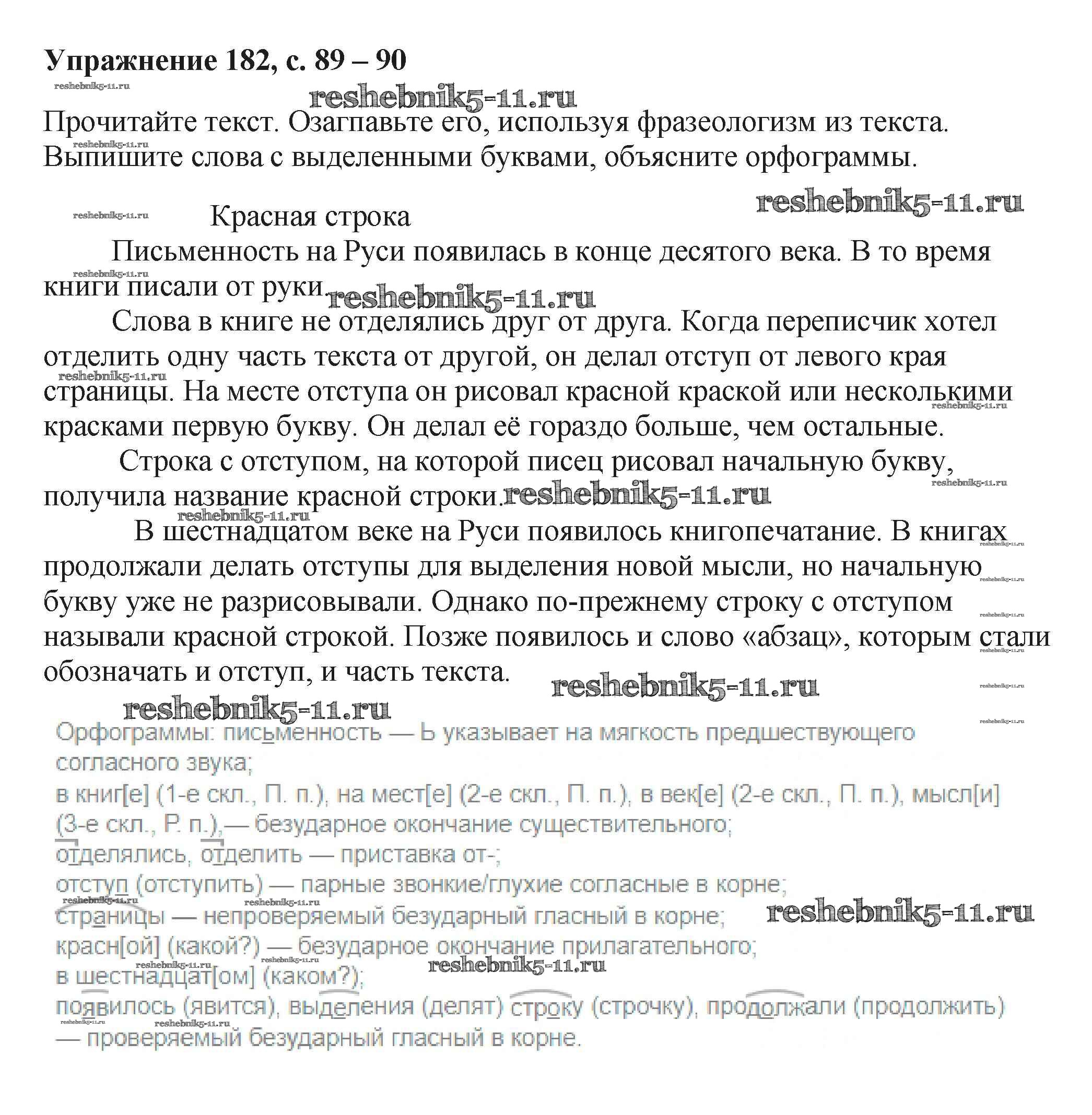 Русский язык за 6 класс Баранов Учебник Просвещение упражнение 182