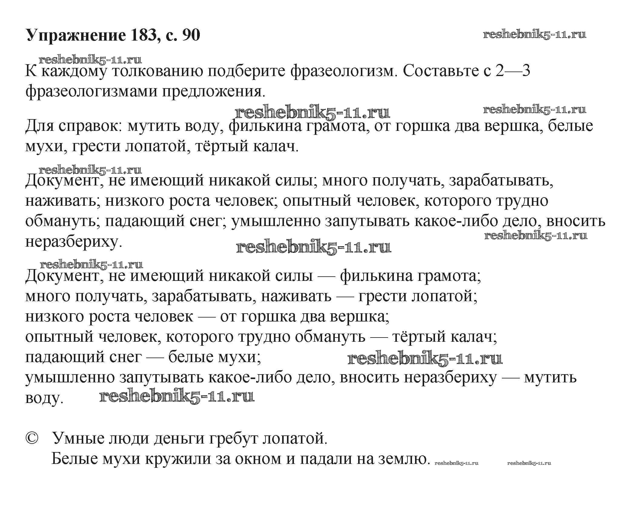 Русский язык за 6 класс Баранов Учебник Просвещение упражнение 183