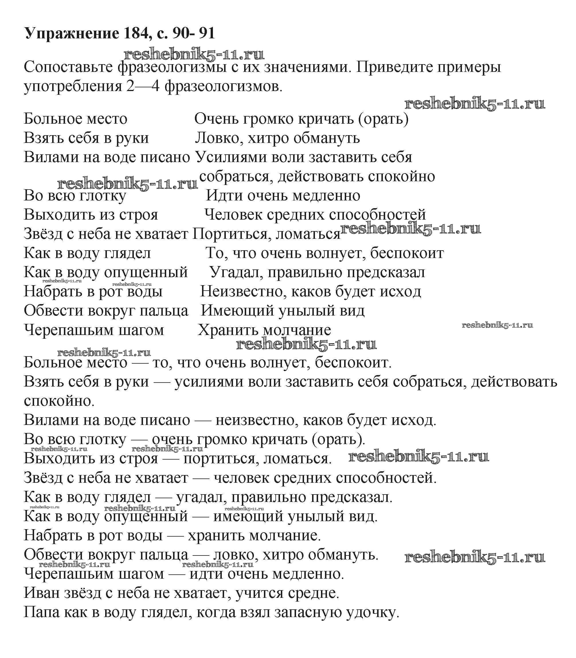 Русский язык за 6 класс Баранов Учебник Просвещение упражнение 184