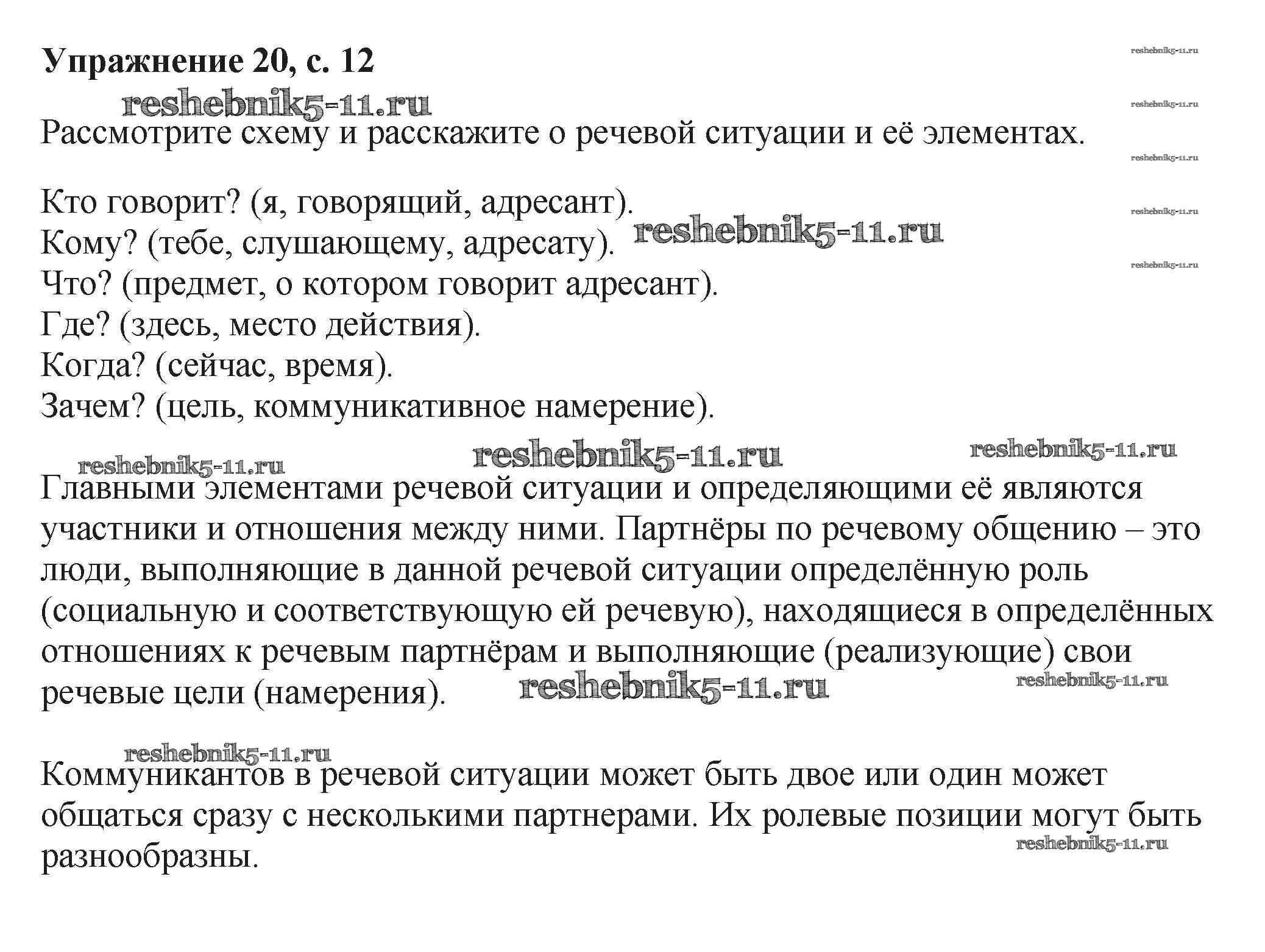 Русский язык за 6 класс Баранов Учебник Просвещение упражнение 20