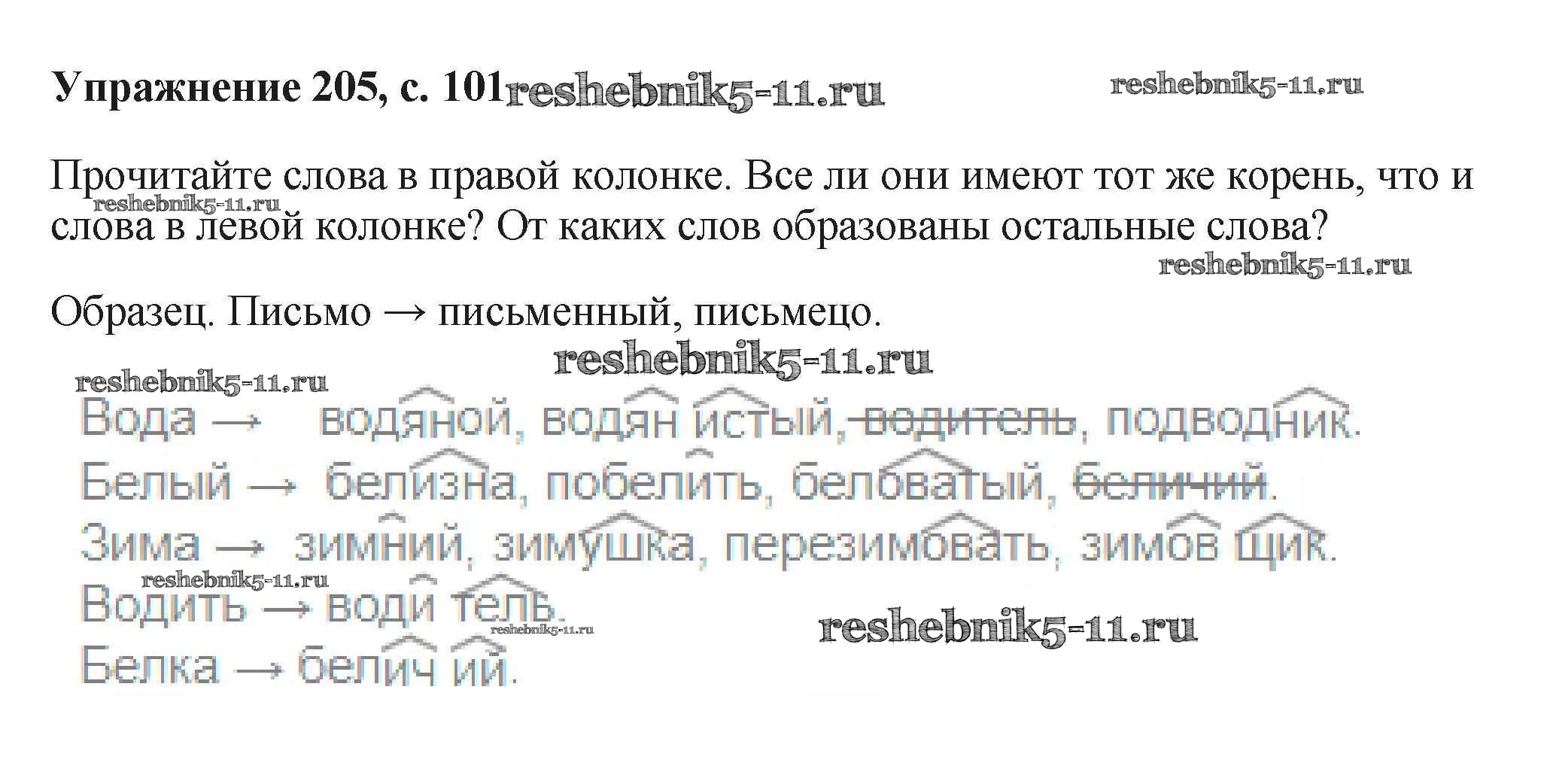 Готовая домашняя работа с ответами по Русскому языку за 6 класс Баранов, Ладыженская, Тростенцова, Григорян, Кулибаба Учебник Часть 1, 2 Просвещение 2015 ФГОС - Упражнения 205