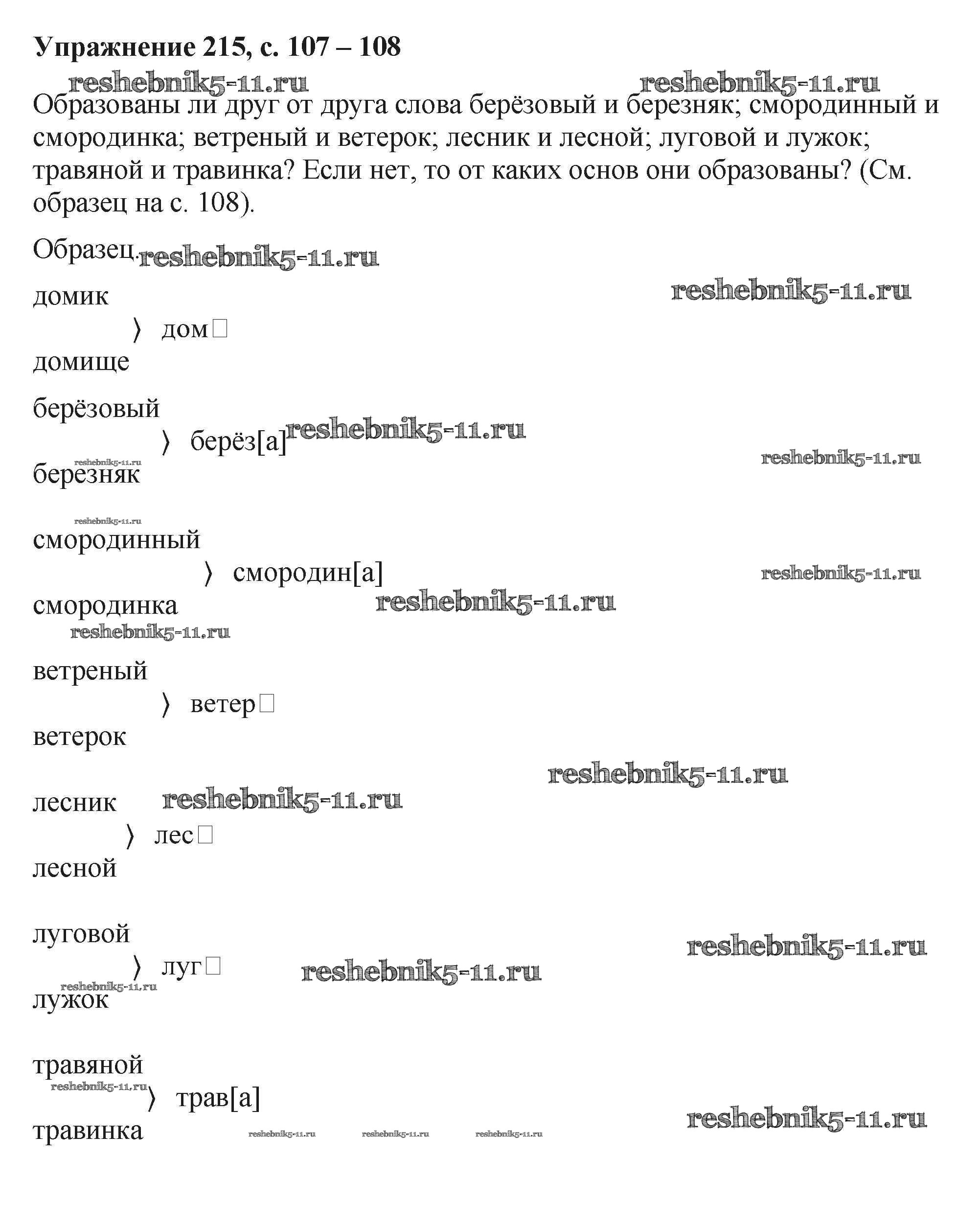 Готовая домашняя работа с ответами по Русскому языку за 6 класс Баранов, Ладыженская, Тростенцова, Григорян, Кулибаба Учебник Часть 1, 2 Просвещение 2015 ФГОС - Упражнения 215
