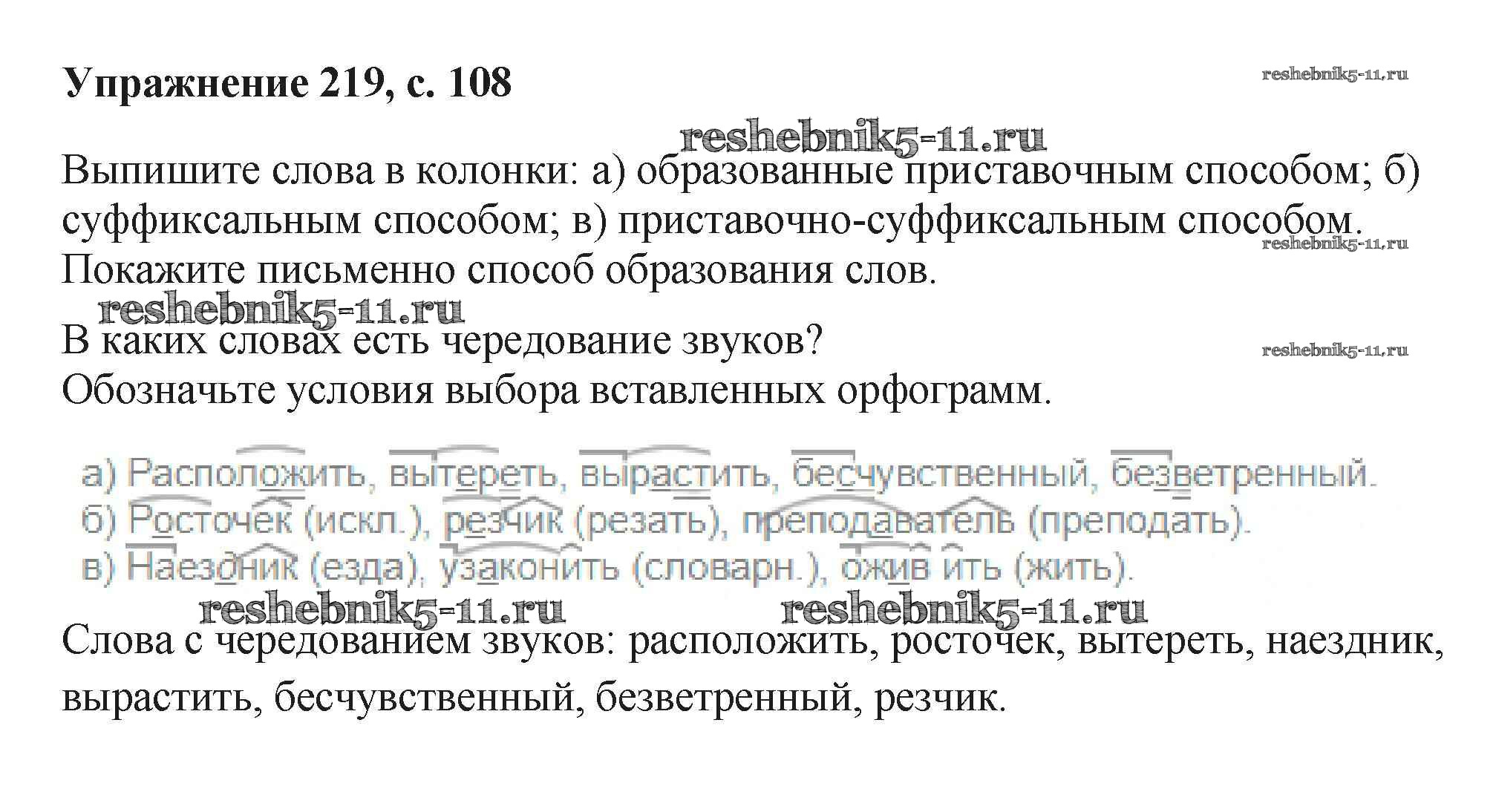 Готовая домашняя работа с ответами по Русскому языку за 6 класс Баранов, Ладыженская, Тростенцова, Григорян, Кулибаба Учебник Часть 1, 2 Просвещение 2015 ФГОС - Упражнения 219